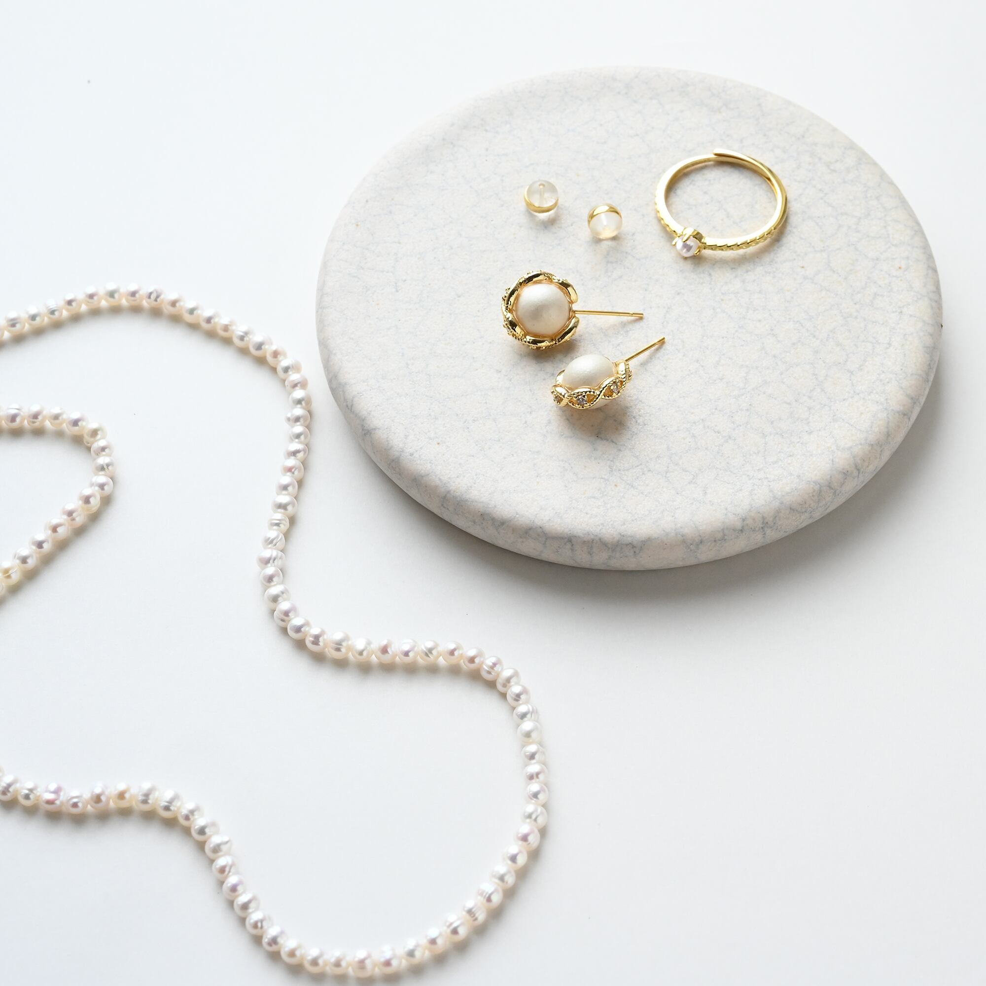 縦約11mm×横約8mmの小ぶりなサイズ感とコロンとした姿が愛らしく、普段使いにも特別な日にもさりげなく上品さを添えます。
