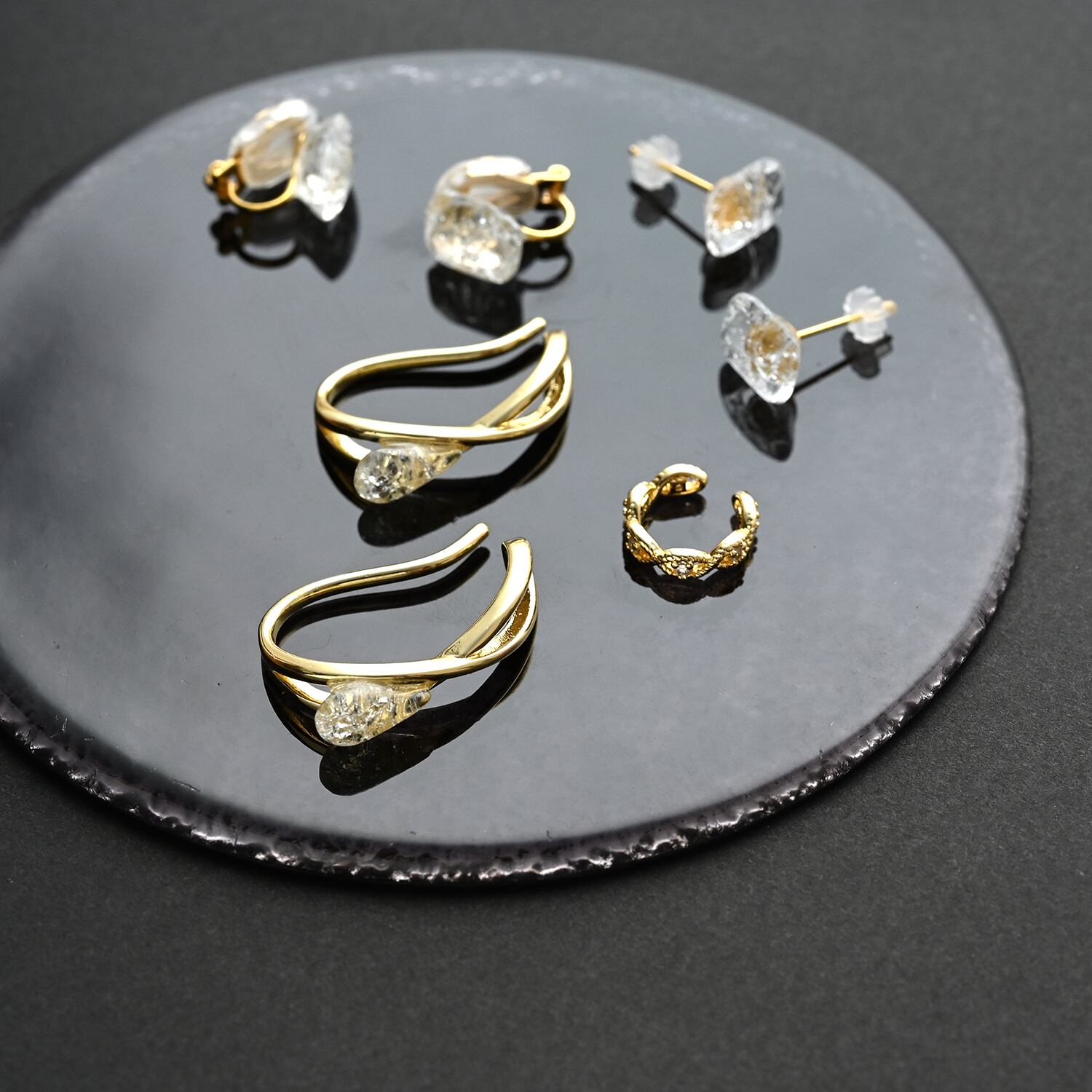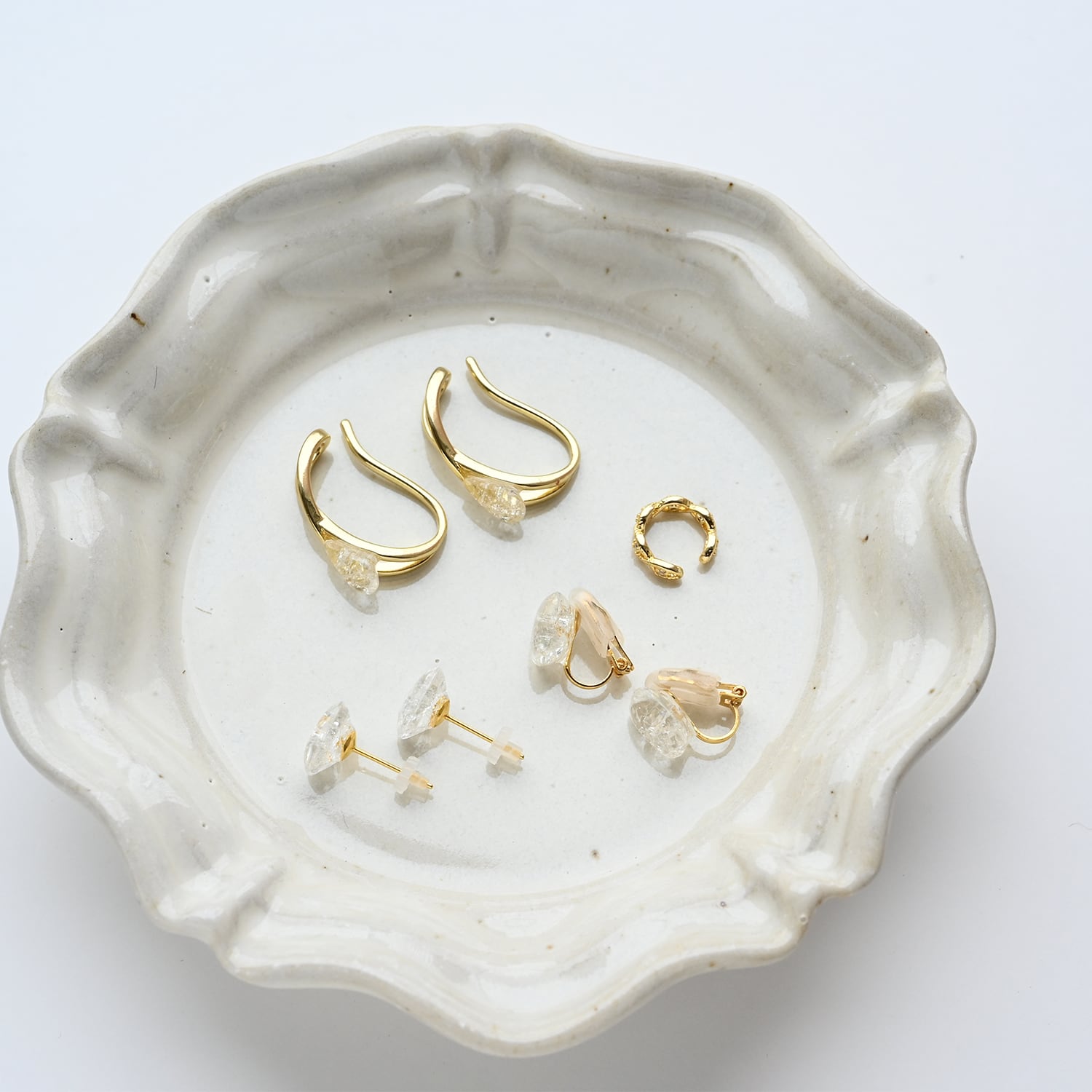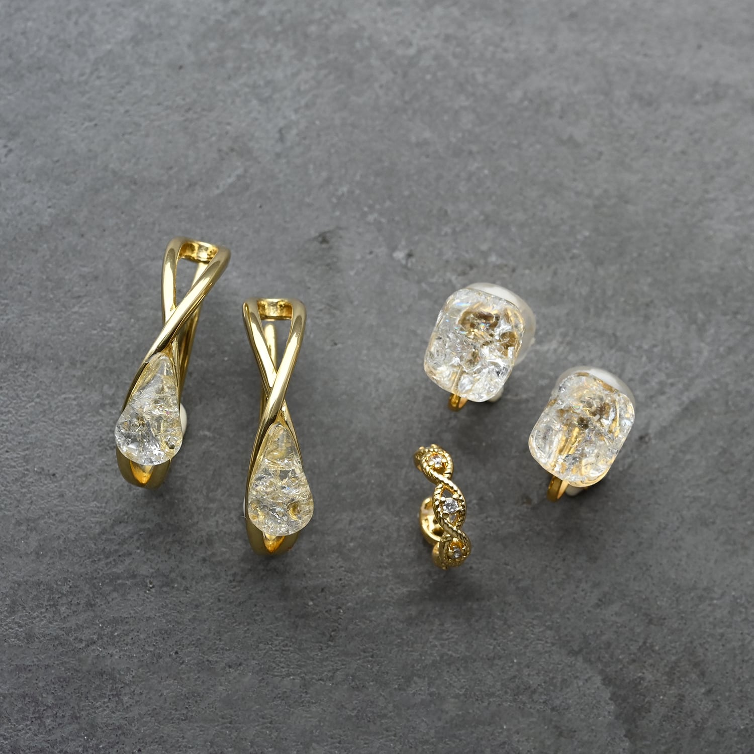 ① 2個セット|上品な輝きのヴィンテージガラスのイヤーカフ[クラックルストーン・クリア・ミニ]