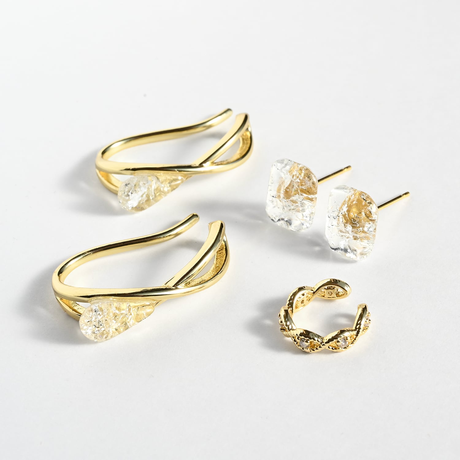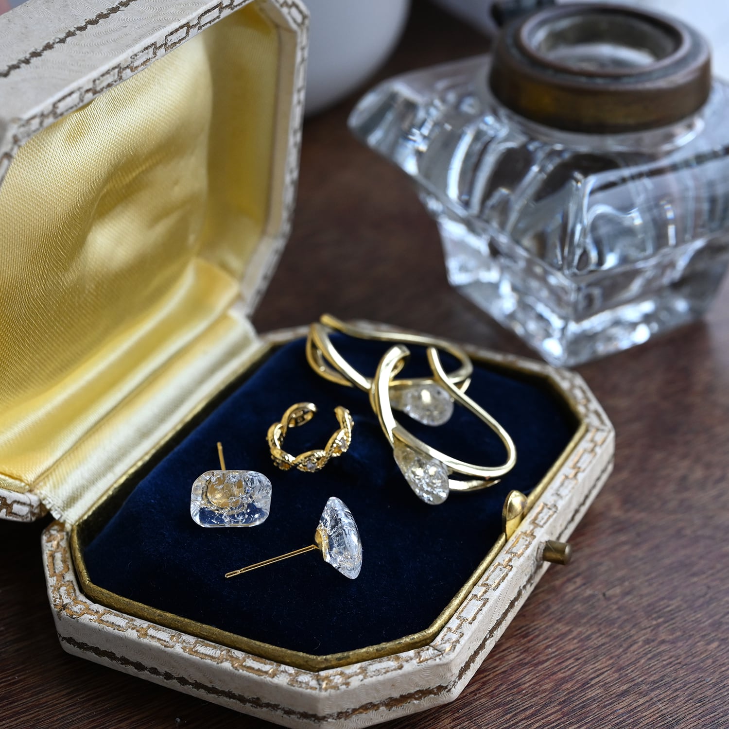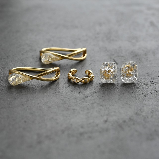① 2個セット|上品な輝きのヴィンテージガラスのイヤーカフ[クラックルストーン・クリア・ミニ]