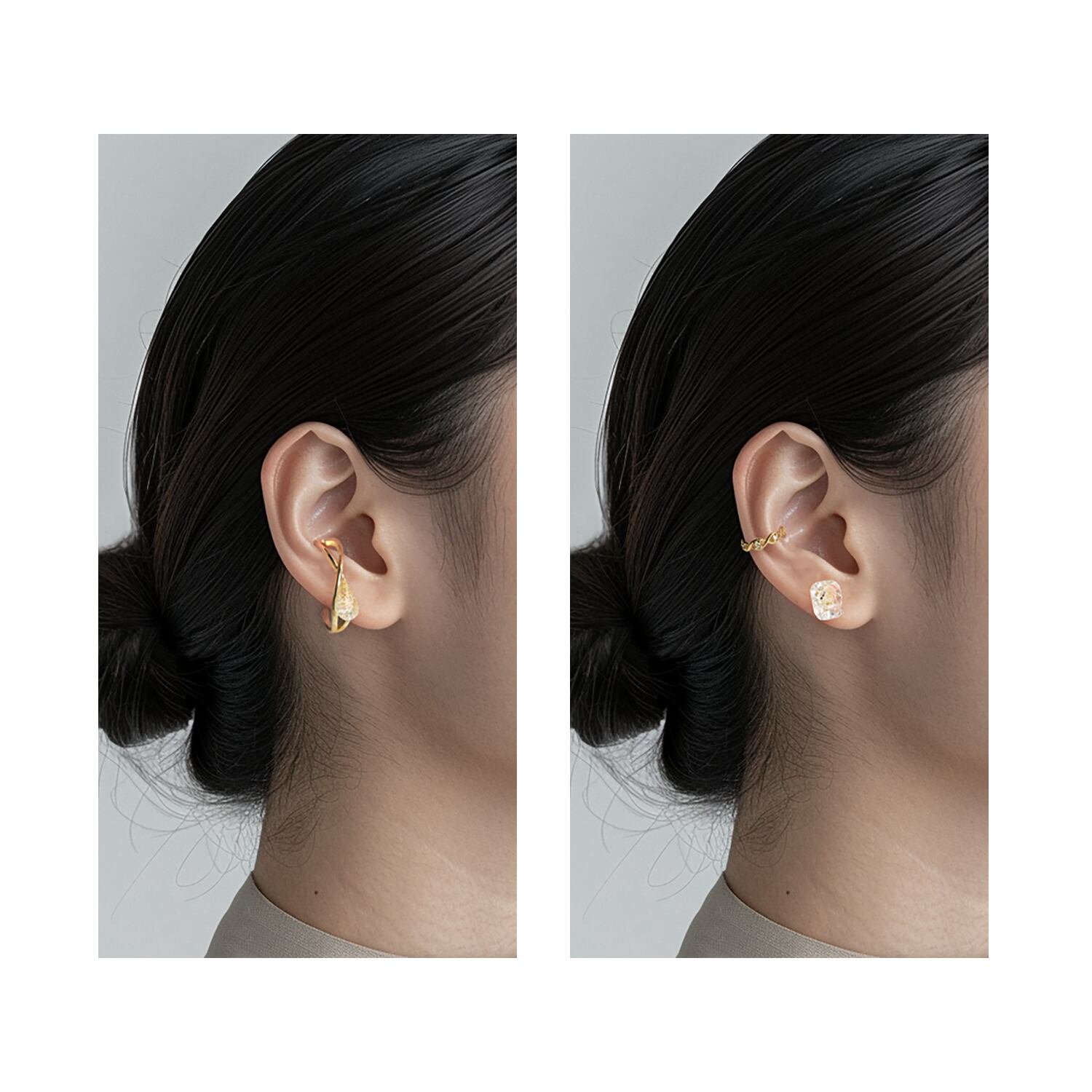 イヤーカフの着用には個人差やお耳の形状も影響しますので、上記の点を参考にしながらぜひご調整をお試しください。