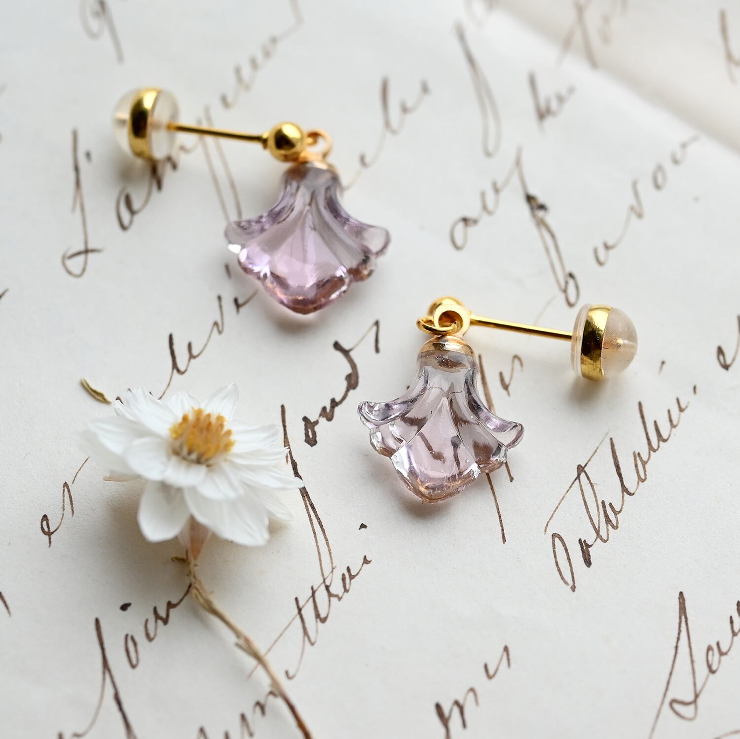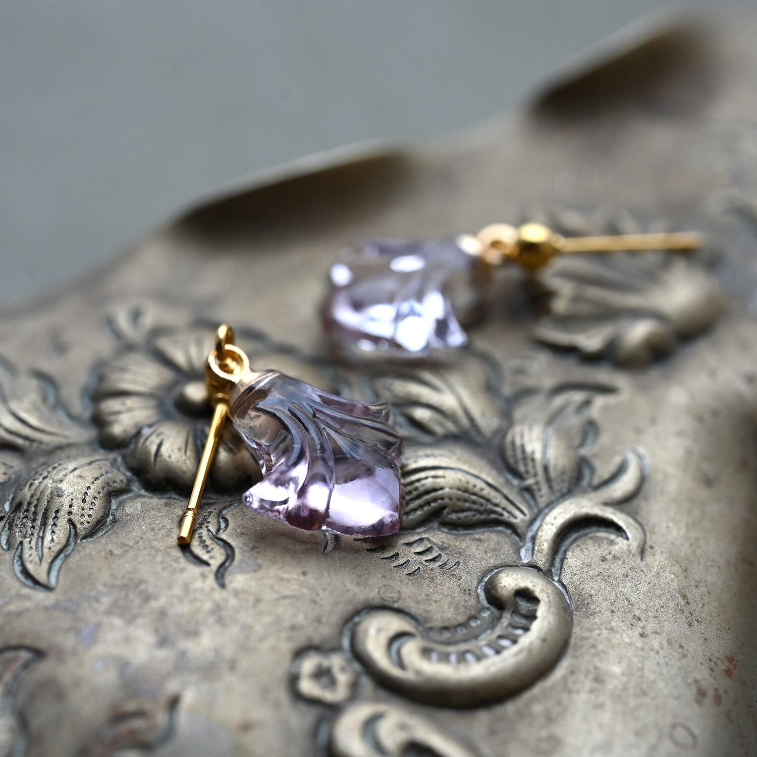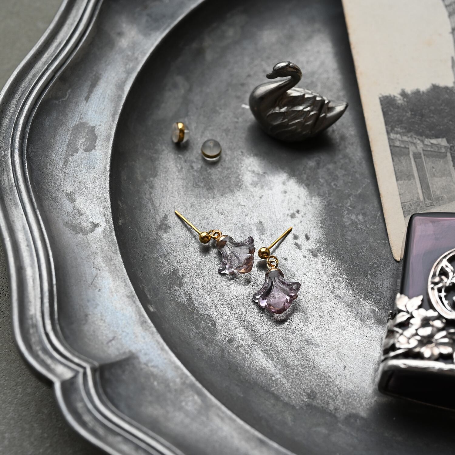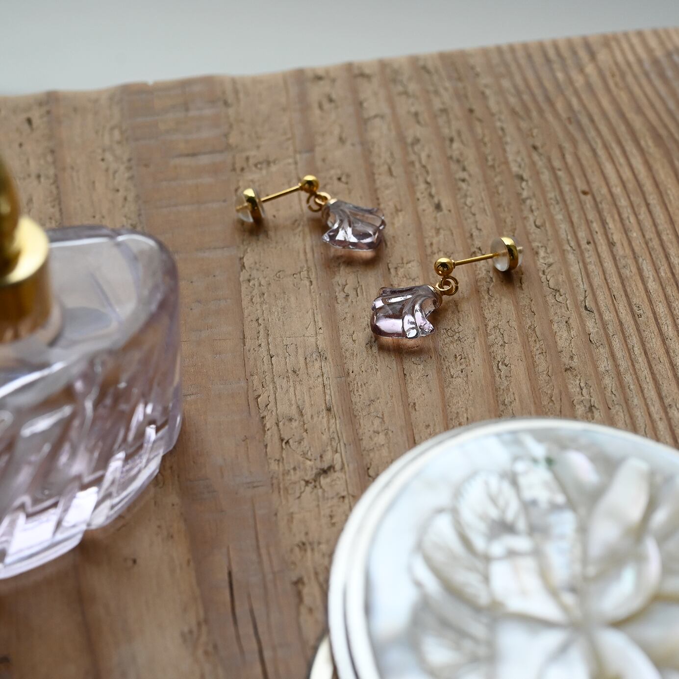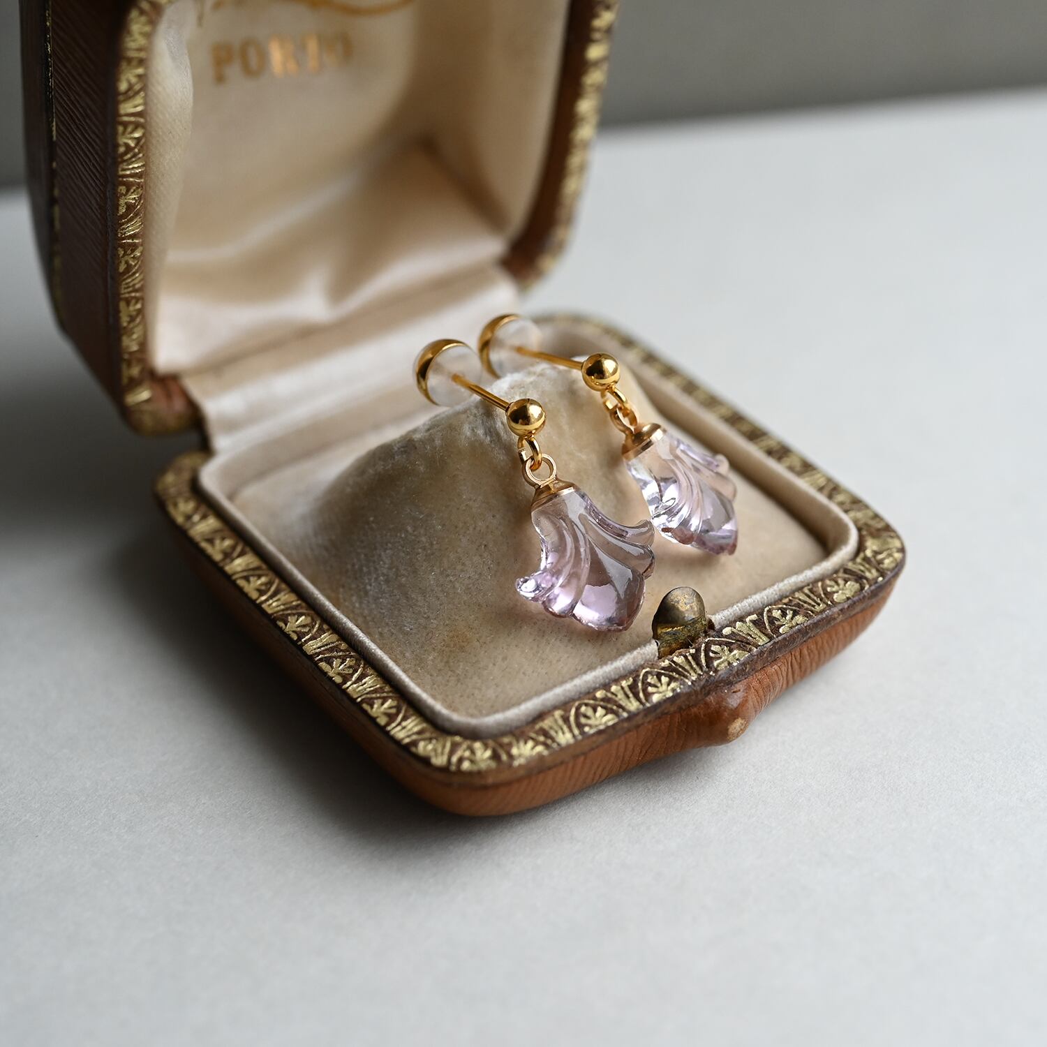 【数量限定】アール・デコヴィンテージガラスのピアス/イヤリング[タッセル・クリアラベンダー] pag066