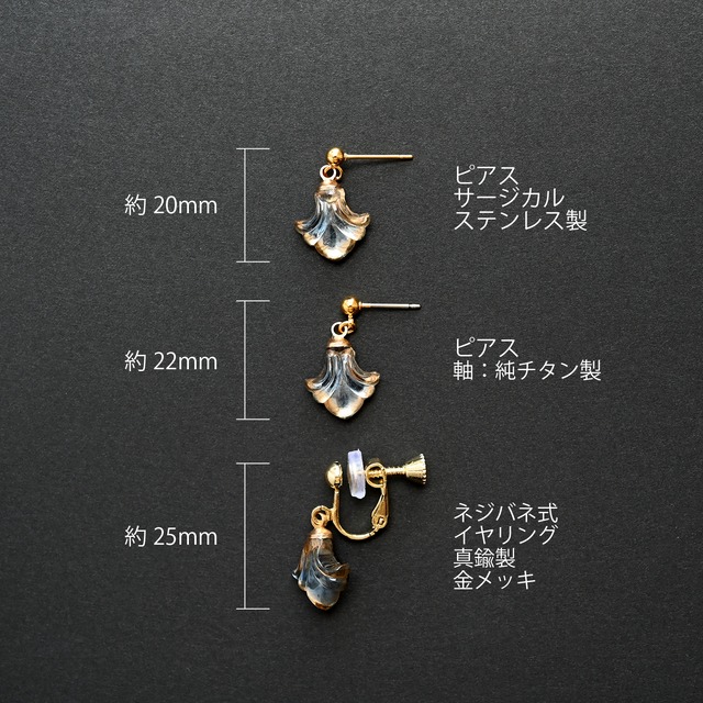 【サイズ】ピアス:約20~22mm×約12mm、イヤリング:約25mm×約12mm