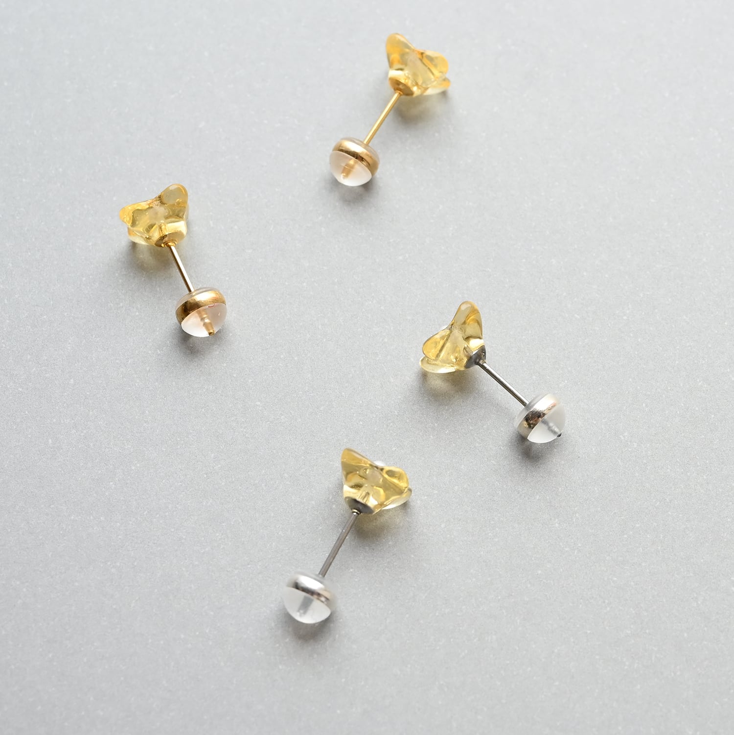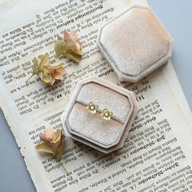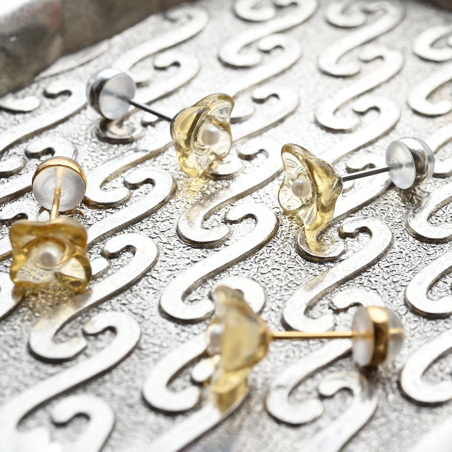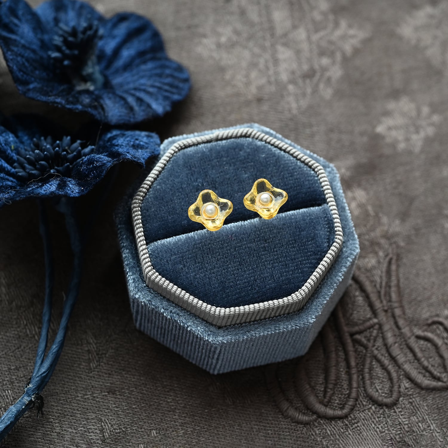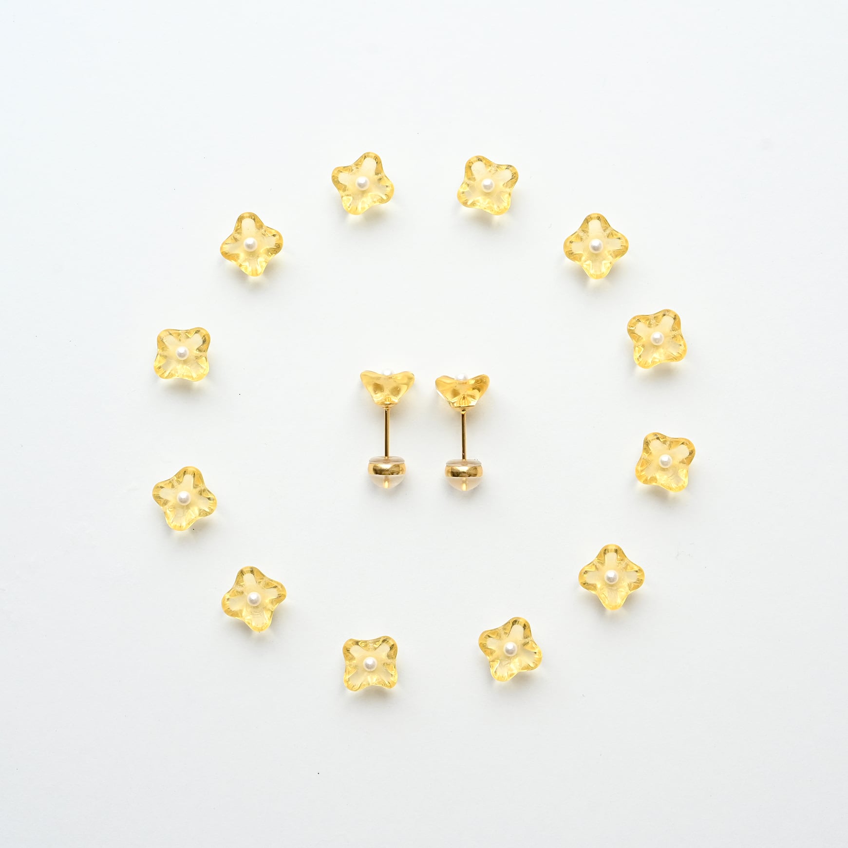 ヴィンテージガラスとパール|小さな花のピアス/ノンホールピアス[ハニーイエロー]
