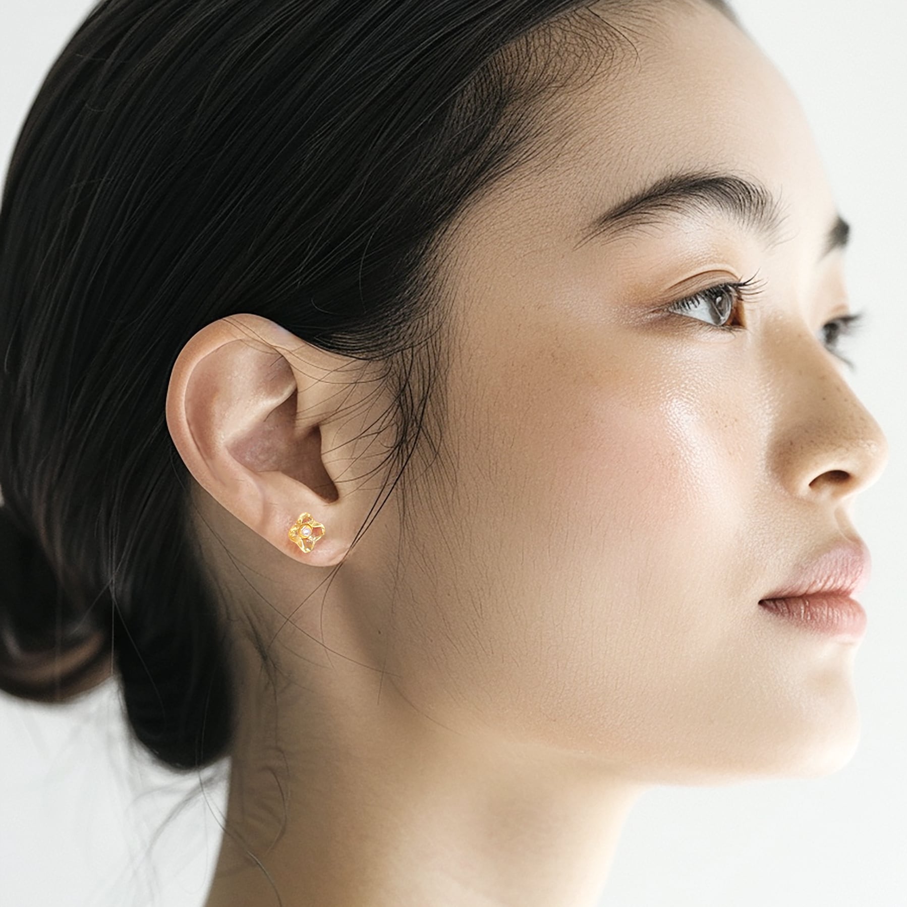 花芯のパールが上品なアクセントとなり、耳元を爽やかに彩ります。