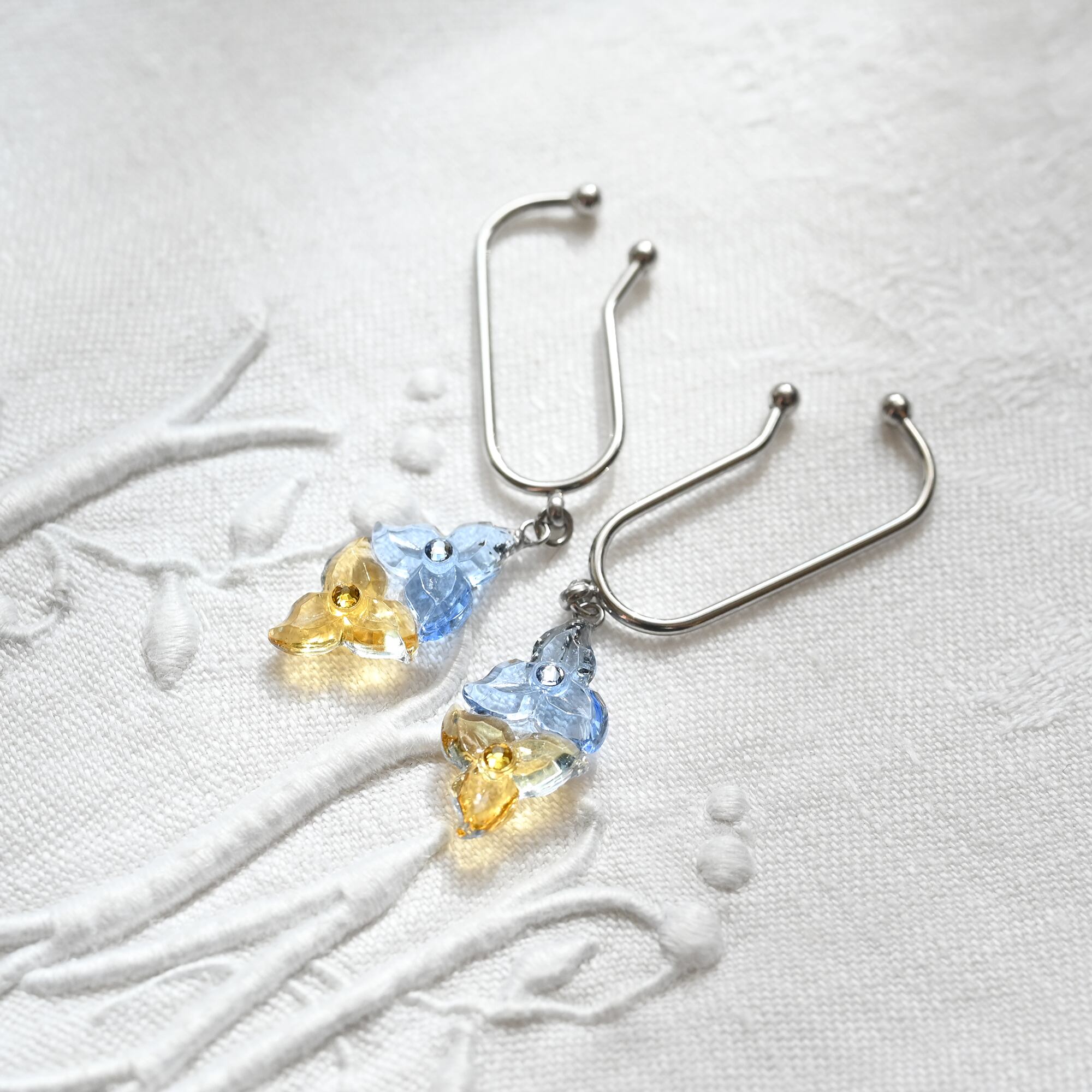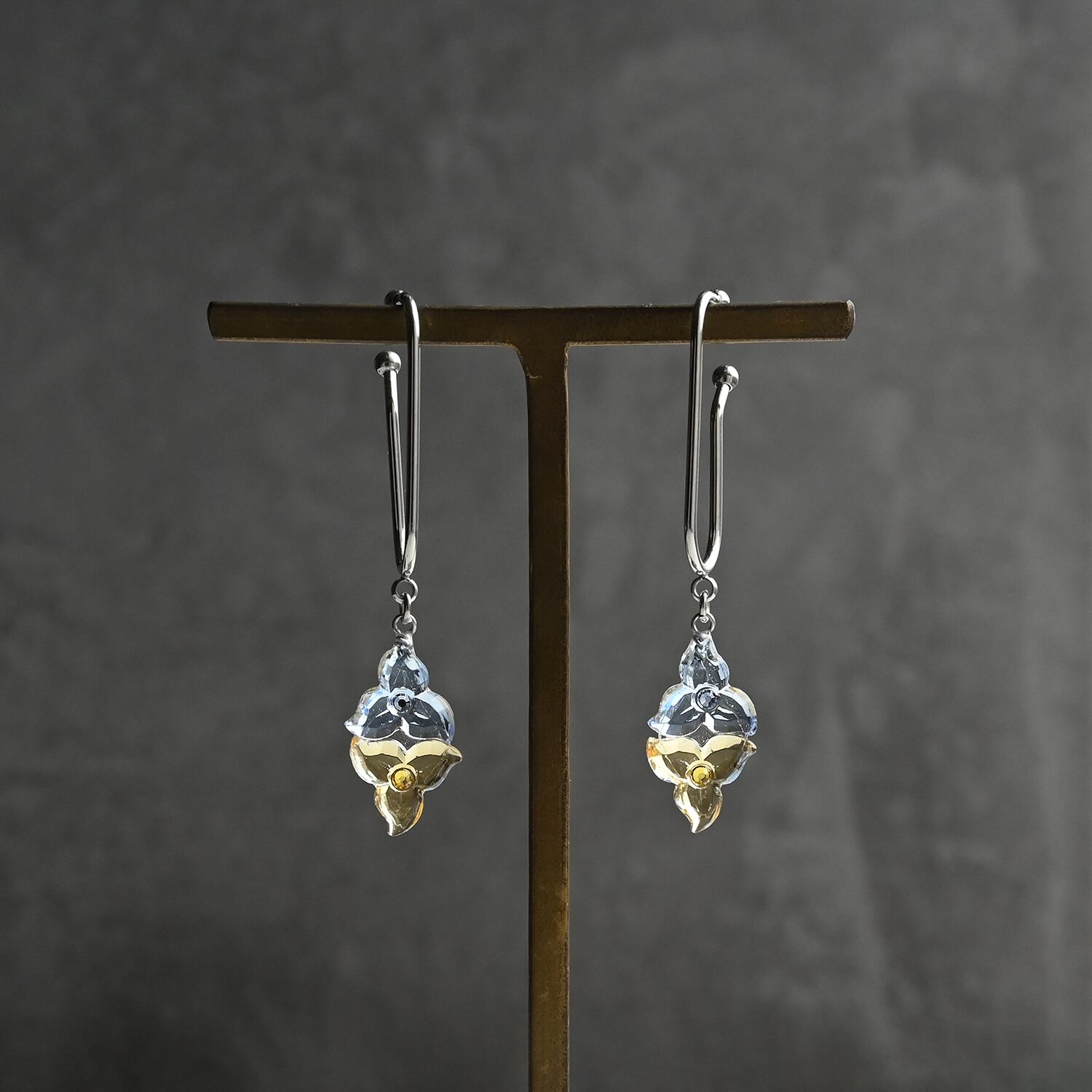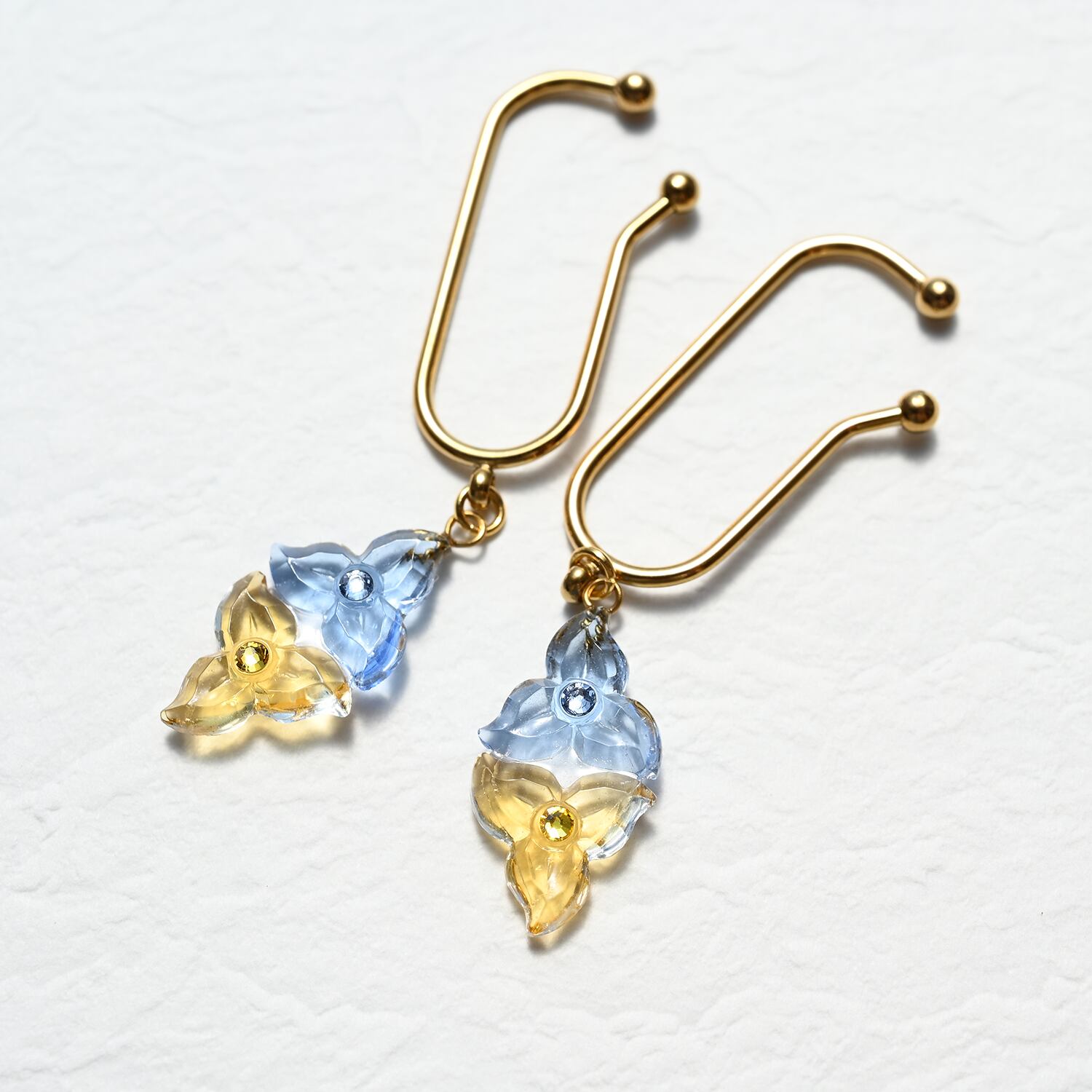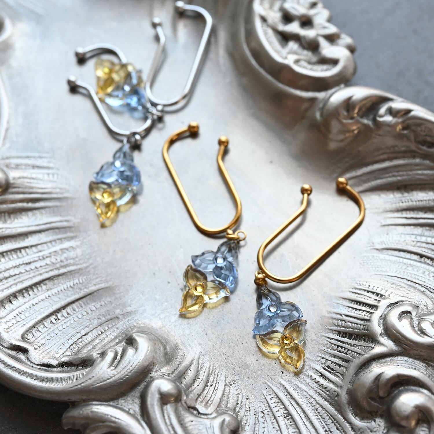 2個セット|ヴィンテージガラスの揺れる透明な花イヤーカフ[ペールブルー&イエロー]