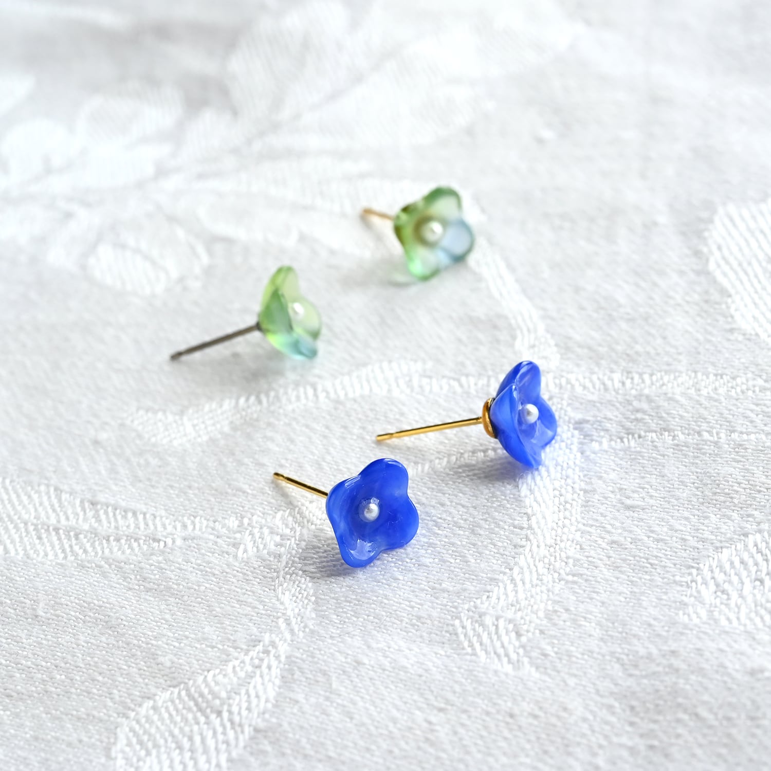 ヴィンテージガラスとパール|青い花のピアス/ノンホールピアス[A] pag016